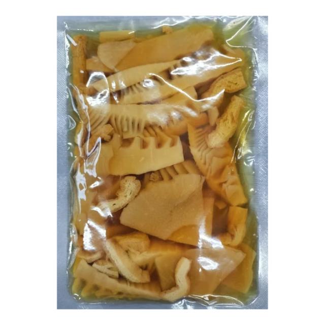 ・筍(九州産)、調味液[醤油、糖類(砂糖、異性化液糖)、食塩、たん白加水分解物、かつおエキス、その他]、油揚げ(一部に大豆・小麦・豚を含む) / 調味料(アミノ酸等)、酒精、ビタミンB1、塩化マグネシウム