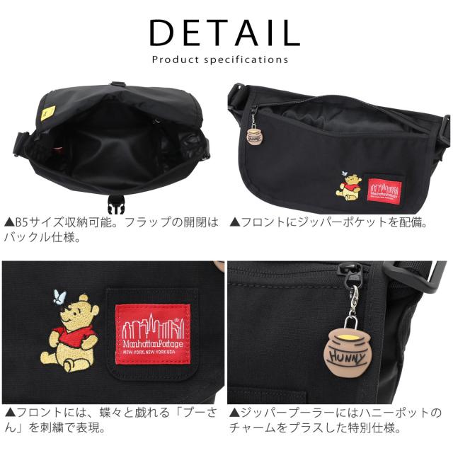 ショルダーバッグ マンハッタンポーテージ くまのプーさん コラボ コレクション ナイロンメッセンジャーバッグ スリム JR フラップジッパー Manhattan Portage ( MP1605JRSFZP500PH25 ) コラボ メンズ レディース 斜め掛け 肩掛け 鞄