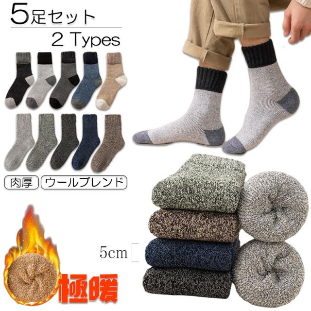 5足セット 靴下 メンズ 暖かい 冬 厚手 ソックス 厚手 暖かい靴下 メンズ 靴下 大きいサイズ 冬 暖かい 厚手 ウールブレンド 靴下 ルームソックス 厚手 厚め 肉厚 暖かい 防寒 保温