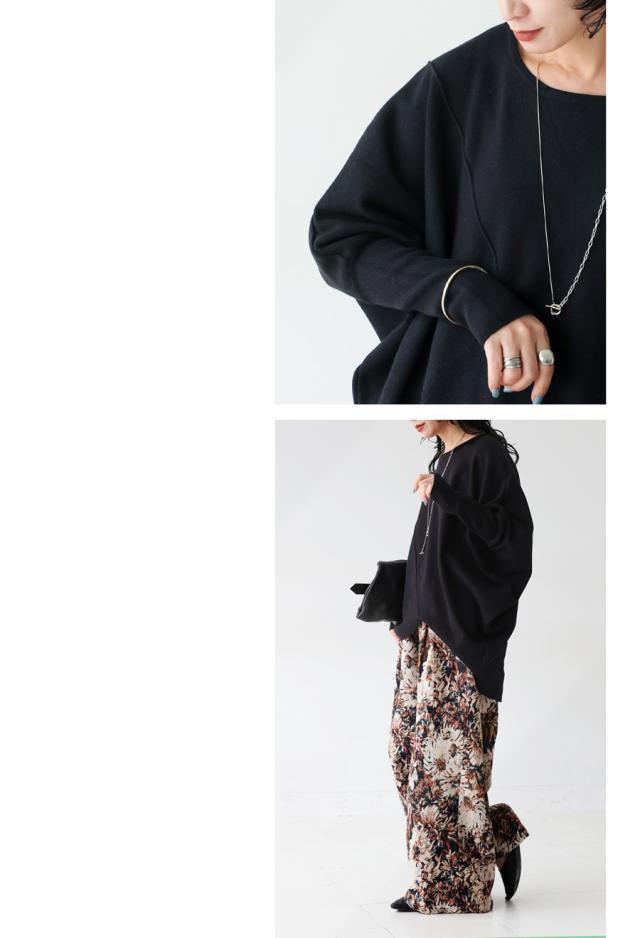 身体のラインを拾わないゆったりシルエットで、ストレスなく着こなせます。