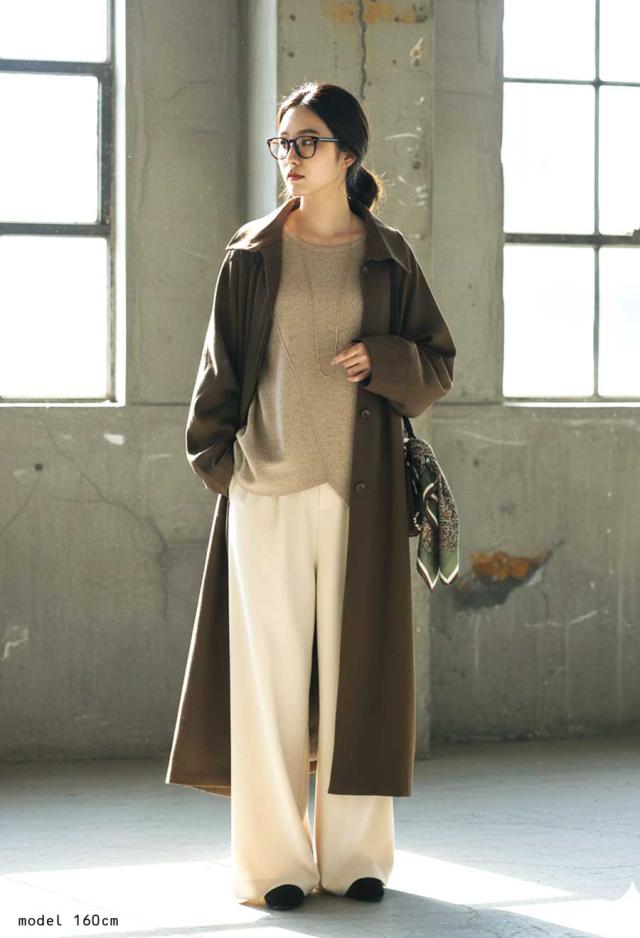 もちっとした肌触りとドレープ感が着用時の立体感を演出し、高級感のある印象に仕上げてくれます。