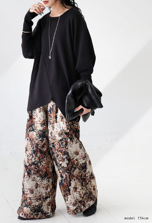 アシメトリーに仕立てた裾の切替ラインが全体を立体的に見せ、のっぺりしないデザイン性が魅力です。