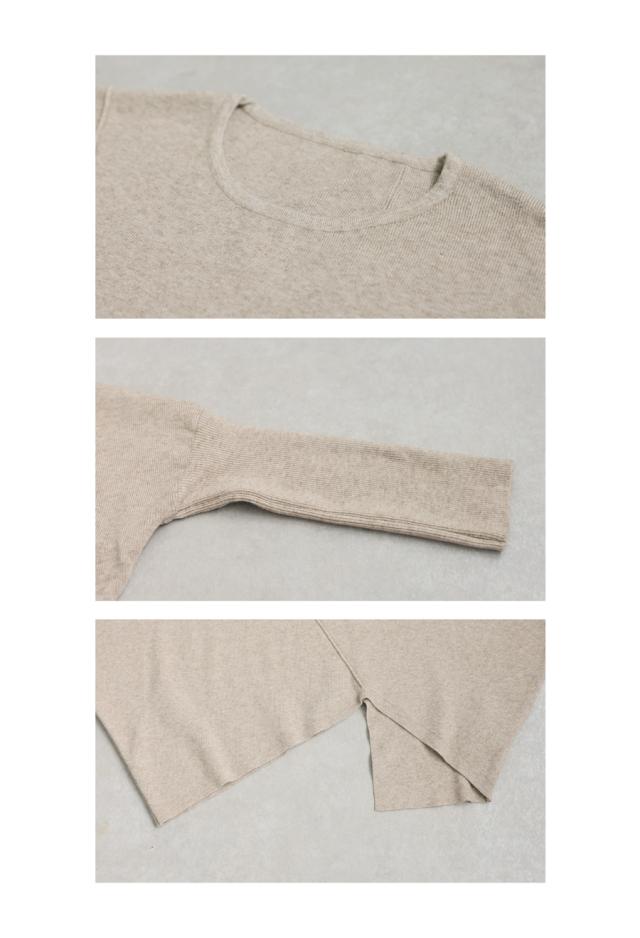ネックラインはクルーネック(丸首)で程よく詰まりがあり、上品に見せてくれます。