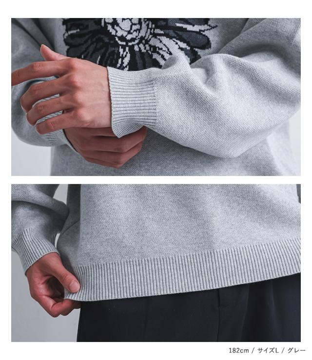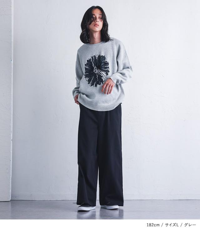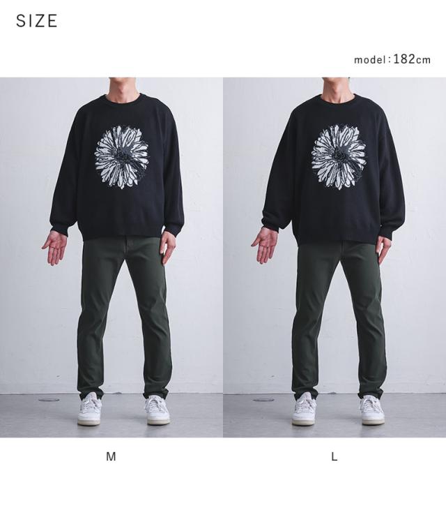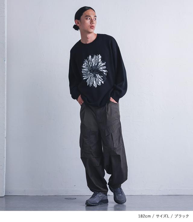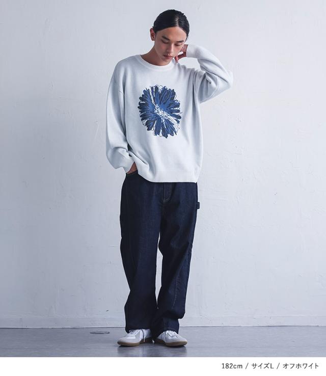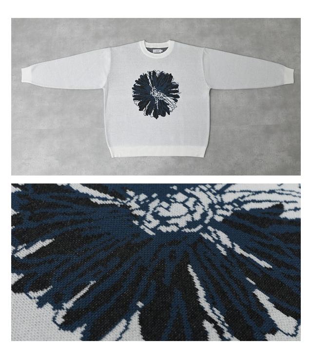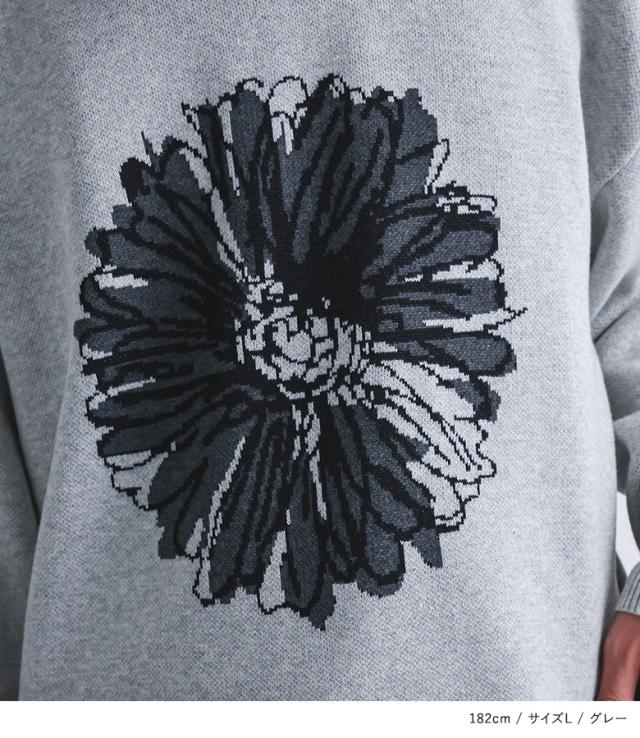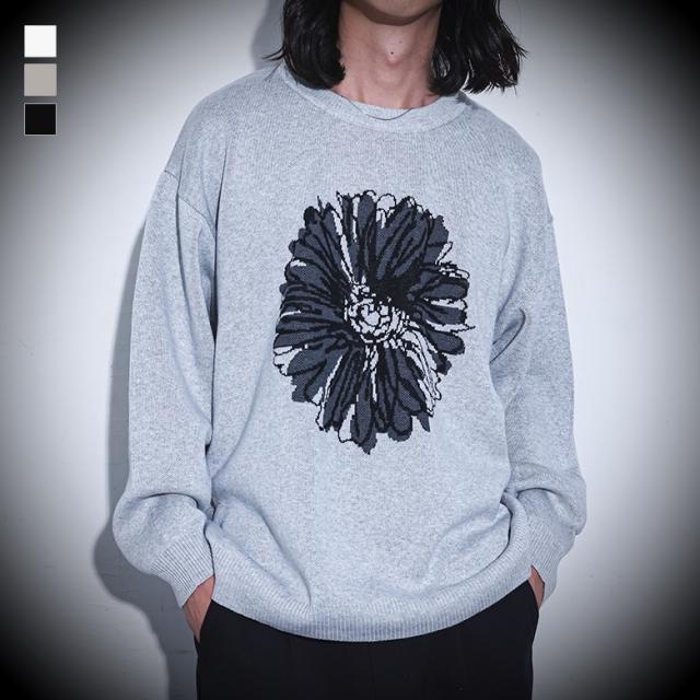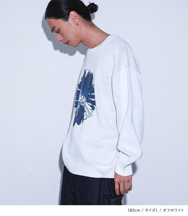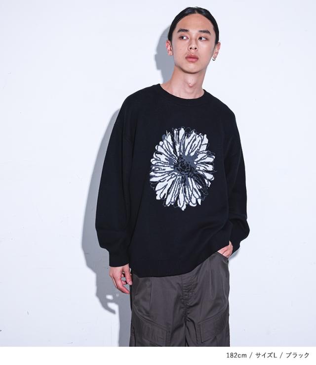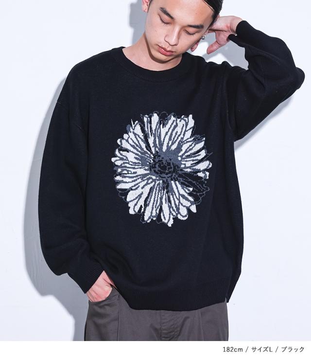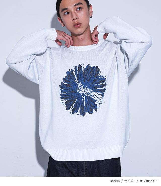 『MDRフラワーモチーフジャカードニット』【メール便不可】【30】[ニット 長袖 メンズ トップス セーター クルーネック プルオーバー 花柄 ジャカード ジャガード 綿混 オーバーサイズ ゆったり 秋 冬]