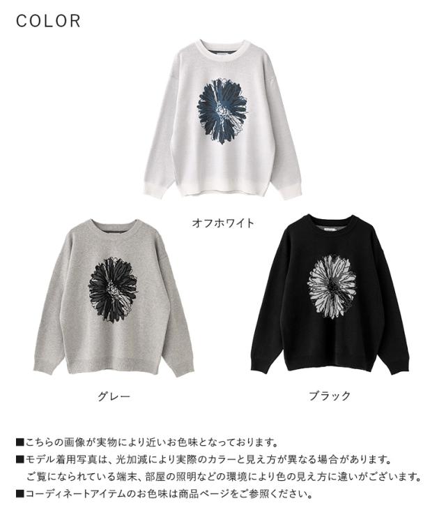 ■デザイン 繊細な花びらの花柄ジャカード編みが目を引くニットプルオーバー。お洒落な配色で、シンプルながらも華やかな印象を演出します。ラフに着られるゆるっとシルエットで、快適さとデザイン性を兼ね備えた一枚です。 ■コーディネート 花柄が引き立つ、シンプルなボトムス合わせがおすすめです。カジュアルなデニムやカーゴパンツのほか、キレイめな印象のスラックスやチノパンツなど幅広く合わせていただけます。 ■素材 しっかりと厚みのあるジャカード編みニット。肌触りの良いコットン混のアクリルニット糸を使用し、着心地も叶えます。 ■製品についての注意書き ニット製品につきまして。 ニット素材の持つ特性として編み上げる行程やプレス仕上げによって多少サイズや風合いの個体差が生じる場合がございます。 着用した時と実寸の長さが変わる可能性がございます。 また、着用の際ピリングが避けられず、完全に防止することはできません。毛玉取り器等で丁寧に取り除いてください。 ご了承の上、ご購入いただきますようお願いいたします。 |