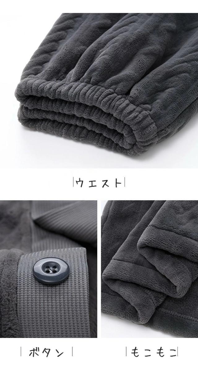 【暖かく眠る】ゆったりとしたサイズ感ので、動きを邪魔しません。それで、寝っている時、寝返りを打っても、パジャマはずり上がらないです。いつも、暖かさを保ちます。一日の疲れを取るリラックスタイムにぴったりで深い眠りにも誘ってくれます。