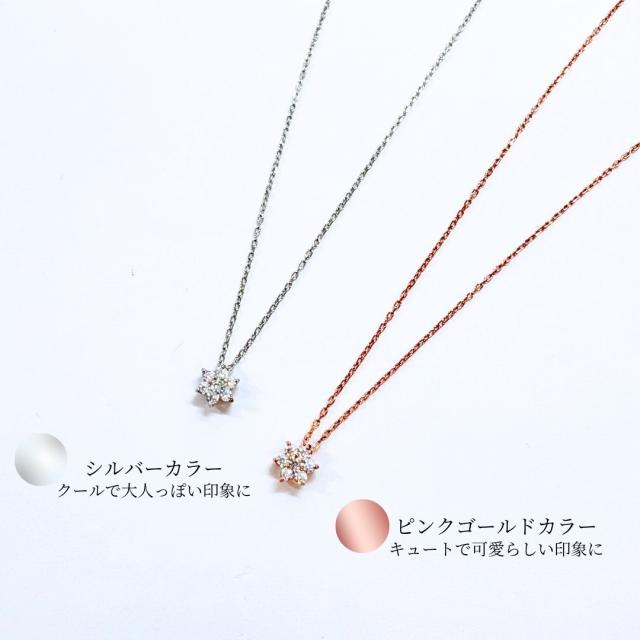 ステンレスネックレス フラワー ネックレス つけっぱなし ステンレス シルバー ピンクゴールド 錆びないネックレス フラワーネックレス 雪