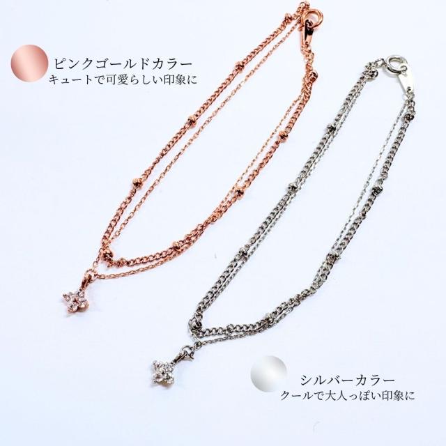 ブレスレット レディース 華奢 花 フラワー ステンレス つけっぱなし シルバー ピンクゴールド 金属アレルギー対応 50代 40代 30代 20代