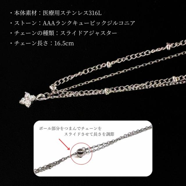アレルギーを誘発しにくい、敏感肌に優しい最高位の医療用ステンレス316Lに、AAAクラスのキュービックジルコニアをあしらったチャームブレスレット。