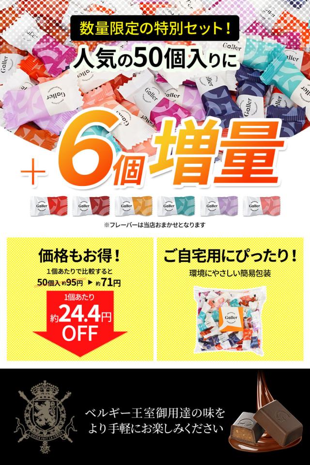 大容量 チョコ ガレー ナノバー50個入+6個 バラエティセット ベルギー王室御用達 お菓子 スイーツ 大量 個包装 会社 職場 お配り用 高級 チョコレート プレゼント 冬ギフト