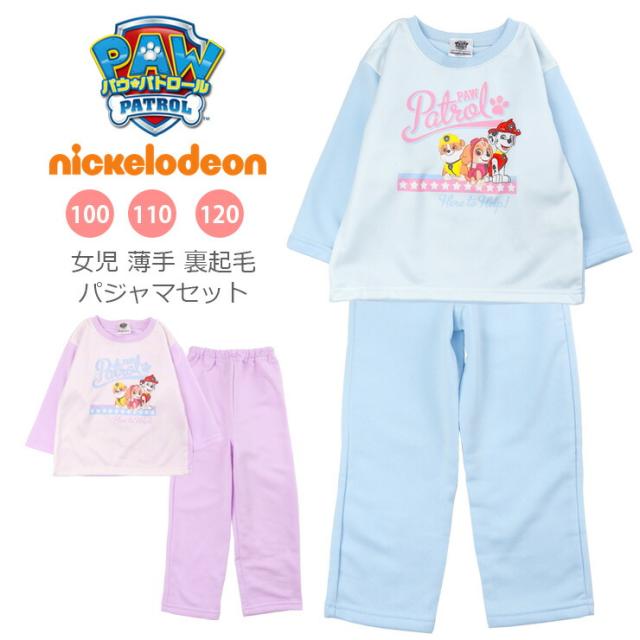パウパトロール 長袖 裏起毛 薄手 パジャマ 上下セットアップ キッズ 秋春 100 110 120 サックス パープル PAW PATROL 76369JH nickelodeon ニコロデオン キャラクター 長ズボン ルームウエア 部屋着 寝間着 プルオーバー 丸首 女の子 送料無料 kj0070