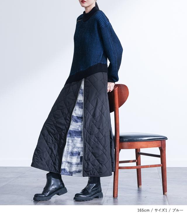 ■デザイン 配色ニットトップスと中綿入りキルティングスカートをドッキングした暖かなワンピース。スカート部分のファスナーを開けると幾何学柄の生地が現れ、気分によって見せ方を変えられます。襟元のファスナーも開け閉め可能でアレンジを楽しめます。デザイン性も機能性も兼ね備えたモードな一着です。 ■コーディネート 着るだけでスタイリングが決まるドッキングデザイン。足元はブーツやローファー合わせがおすすめです。一着でサマになるデザインなのでアウター合わせで寒い季節まで長くご着用いただけます。 ■素材 トップスはアクリル糸の片畦編みニットで快適な着心地。スカートは中綿入りのキルティング生地で、暖かな異素材ドッキングデザインです。 ■製品についての注意書き ニット製品につきまして。 ニット素材の持つ特性として編み上げる行程やプレス仕上げによって多少サイズや風合いの個体差が生じる場合がございます。 着用した時と実寸の長さが変わる可能性がございます。 また、着用の際ピリングが避けられず、完全に防止することはできません。毛玉取り器等で丁寧に取り除いてください。 ご了承の上、ご購入いただきますようお願いいたします。 |