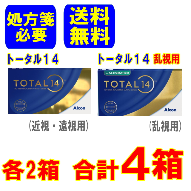 (処方箋必要)アルコン トータル14(近視・遠視用)【2箱】+トータル14乱視用(乱視用)【2箱】 【合計4箱】 メーカー直送 送料無料 2週間使い捨て 乱視用 コンタクトレンズ Total14 Alcon