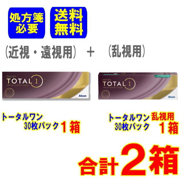 (処方箋必要)デイリーズトータルワン(近視・遠視用)【1箱】+ デイリーズトータルワン(乱視用) 【1箱】【合計2箱】 (1箱30枚入) メーカー直送 送料無料 1日使い捨て トーリック コンタクト アルコン
