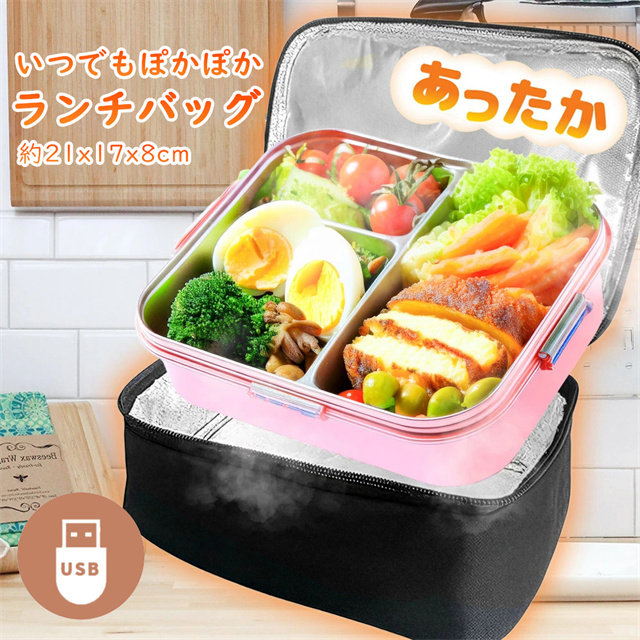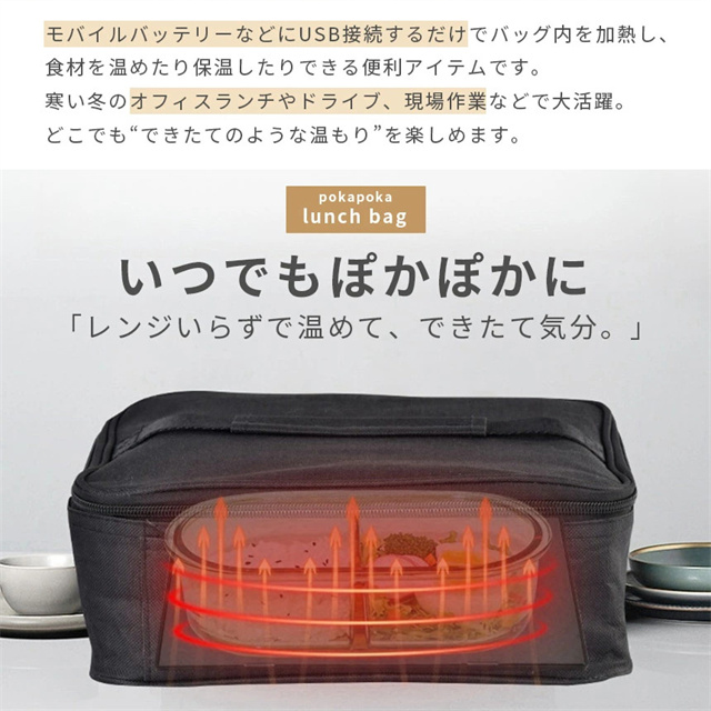 送料無料 冬新作 USB加熱ランチバッグ 保温弁当箱 あったか弁当 温め直し 弁当ポーチ モバイルバッテリー対応 加熱式 保温バッグ オフィス 通勤 通学 車内 冬用 お弁当 コンパクト 軽量 洗える アルミ内張 会社 アウトドア