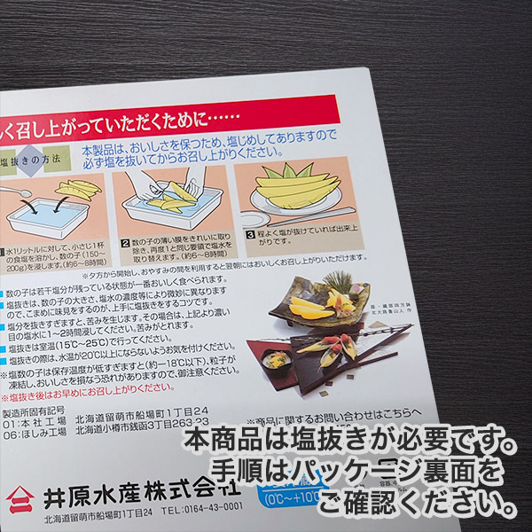 | 調理方法 | 塩抜きが必要です。 詳細はパッケージ裏面をご確認ください。 |