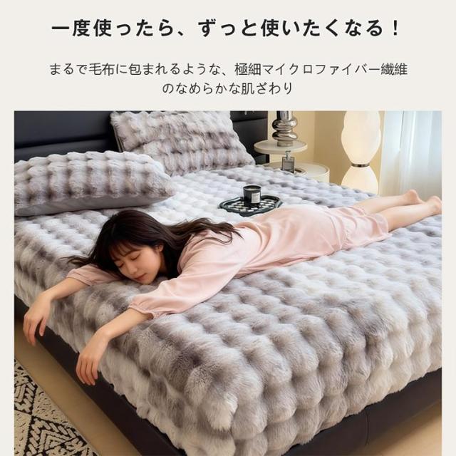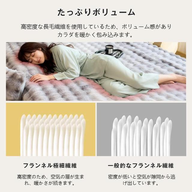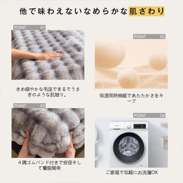 極細マイクロファイバー繊維を使用、長く細い毛足でなめらかな肌ざわりを実現しています。