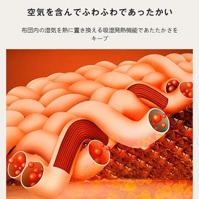 - 寝転んだ瞬間に幸せな気分になります。厚手でとても暖かく、冬でも布団に入ったときのヒヤッと感がありません。