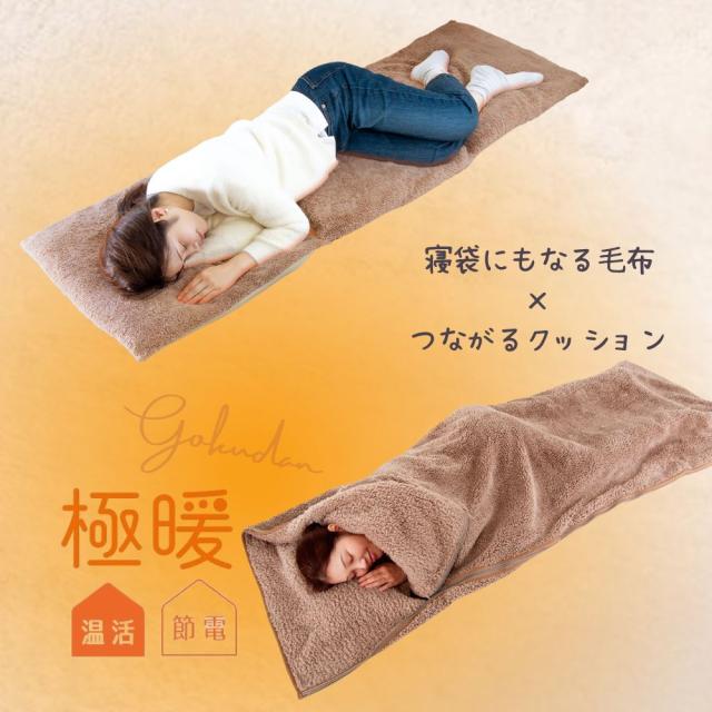 極暖 寝袋にもなる毛布・つながるあったかクッション セット あったかグッズ あったか グッズ 室内 もこもこ あたため 防寒 冷え性 冷え 対策 家事 育児 暖かい 冬用 冬 寒い 寝袋 毛布 1人用 一人用 アウトドア 防災 お尻 クッション 長方形 正方形