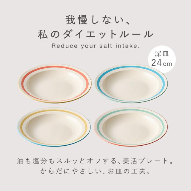 ダイエット プレート 皿 24cm 油切皿 減塩 ヘルシー BPAフリー 食器 健康 油 塩分 落とす 食洗機対応 レンジ対応 割れない レトロ おしゃれ リネア 深皿M