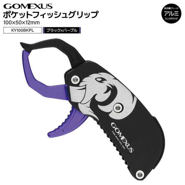 ゴメクサス ミニフィッシュグリップ マンモス KY100BKPL ブラック パープル アルミ 渓流 ライトゲーム 小型 ポケットフィッシュグリップ 釣り具 GOMEXUS