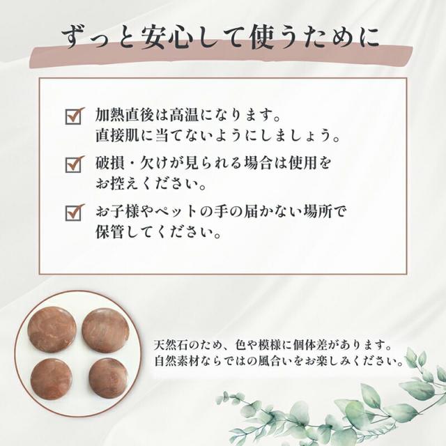 ご注意: ※ストーンの温めすぎによるやけどにご注意ください。※強い衝撃を与えると割れる場合がありますのでご注意ください。※本製品はすべて手作りの工芸品です。そのため、重量やサイズには多少の誤差が生じる場合がございます。