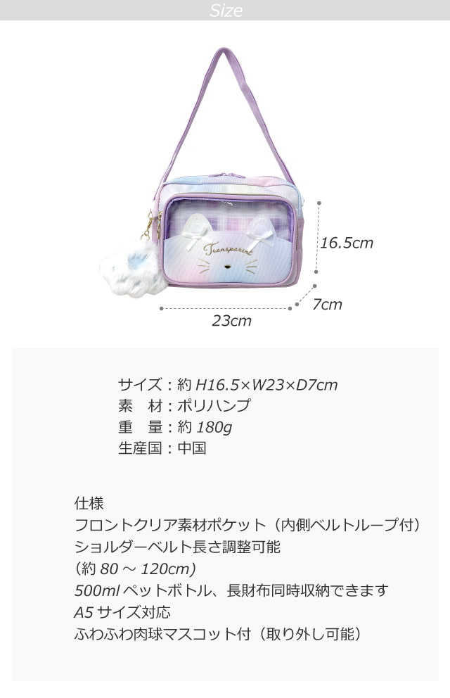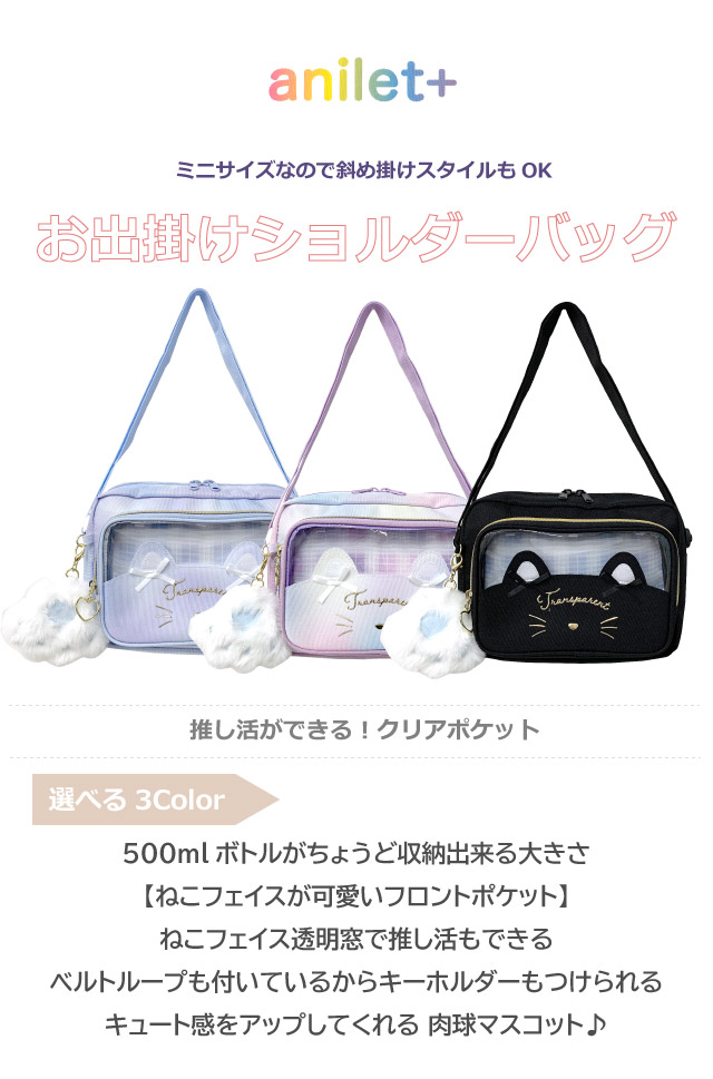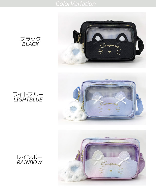 ■イメージ・その他:おしゃれ お洒落 人気 人気 ランキング 可愛い かわいい 使いやすい 黒 ブラック ブルー 水色 レインボー パープル 紫 グラデ グラデーション チェック リボン クリア 肉球 ネコ 猫 ねこ グッズ キーホルダー付き ガーリー ミニショルダーバッグ ショルダーバック ミニ 小さめ B6対応 500mlペットボトル収納可能 長財布収納可能 推し活 推し活バッグラッピング袋付き 無料セルフラッピング