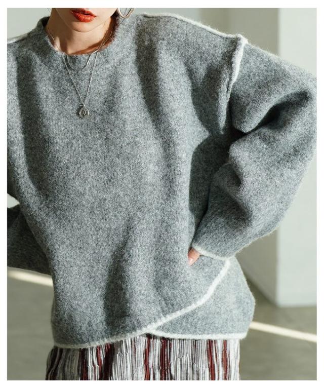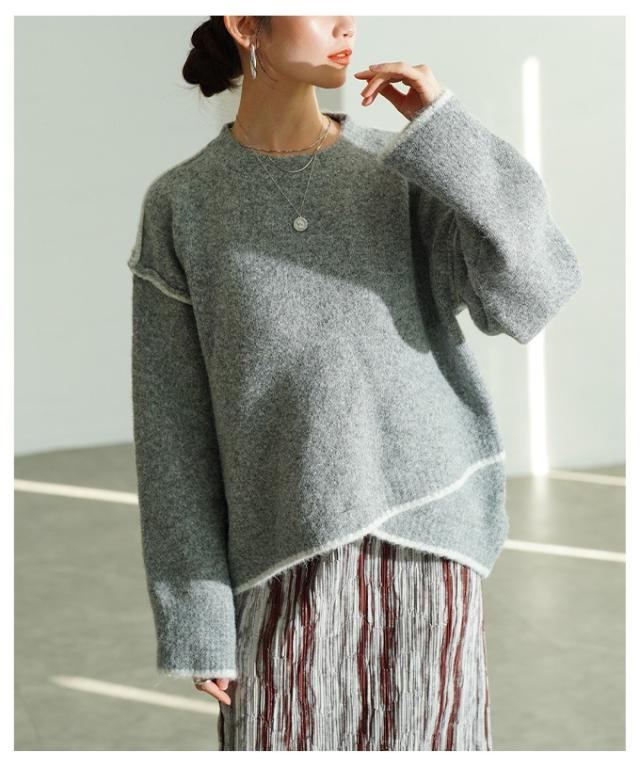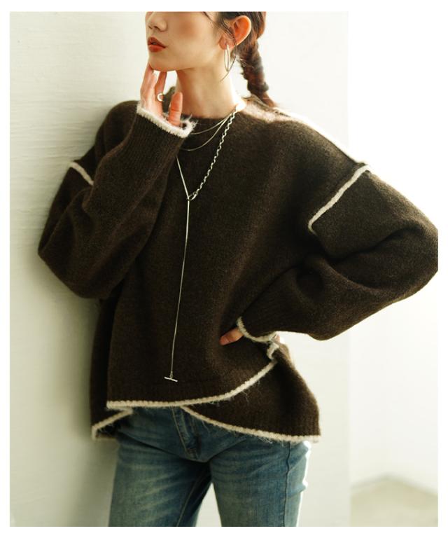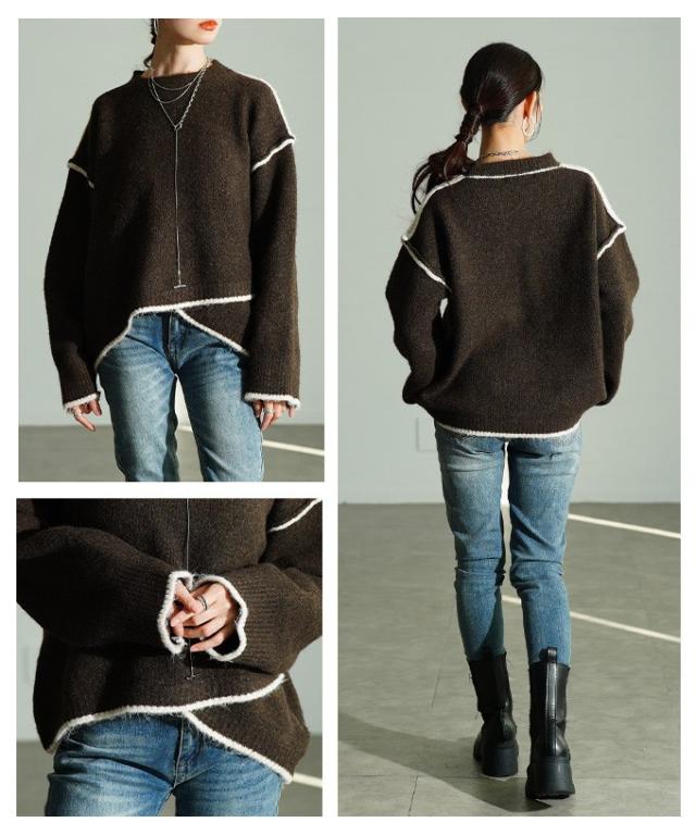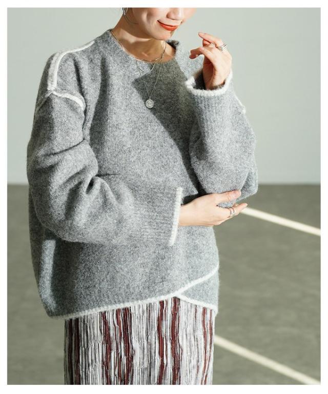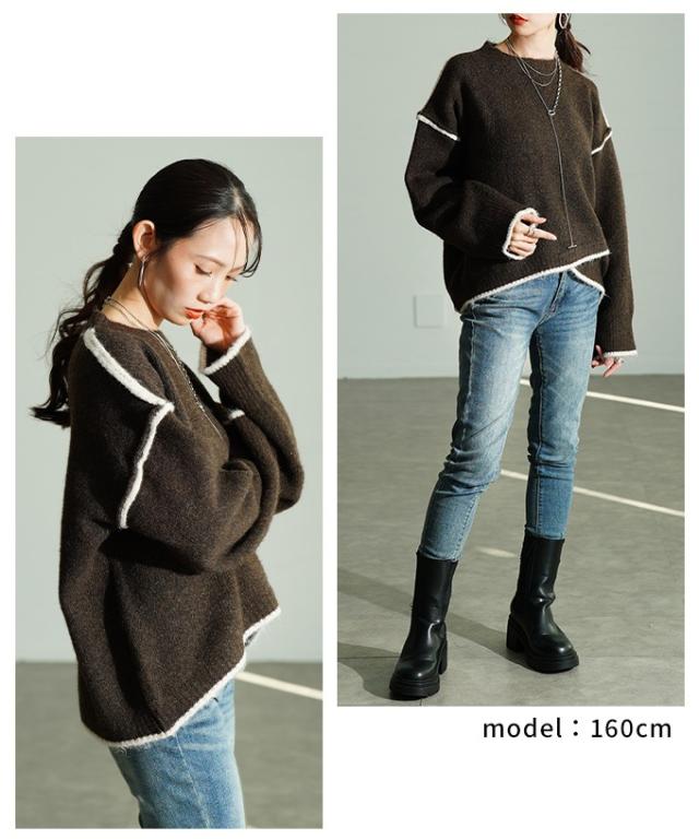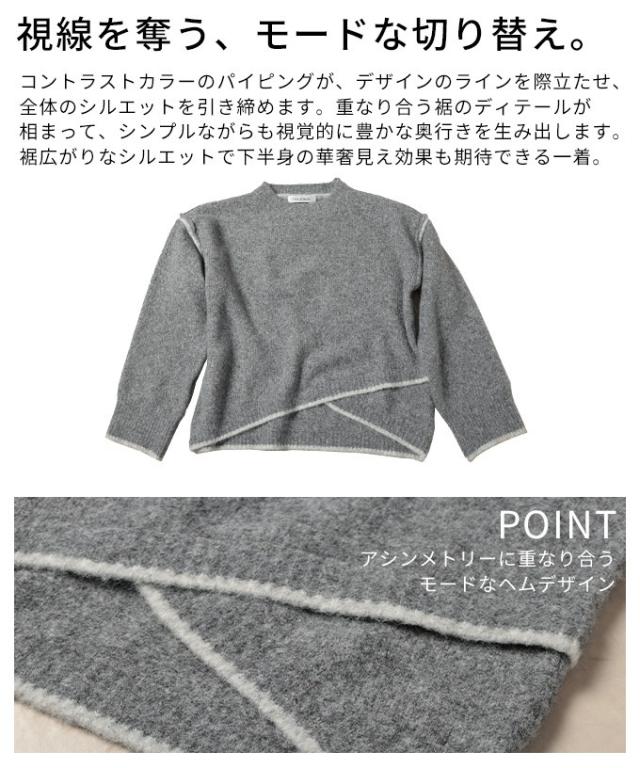 冬新作 ラフに垢抜けるパイピングイレヘムニットプルオーバー レディース ファッション トップス ニット セーター パイピング イレヘム 長袖 プルオーバー 配色 30代 40代 50代 60代 アラモード alamode otona 大人 cawaii 可愛い 洋服 かわいい服 aljun-1013s