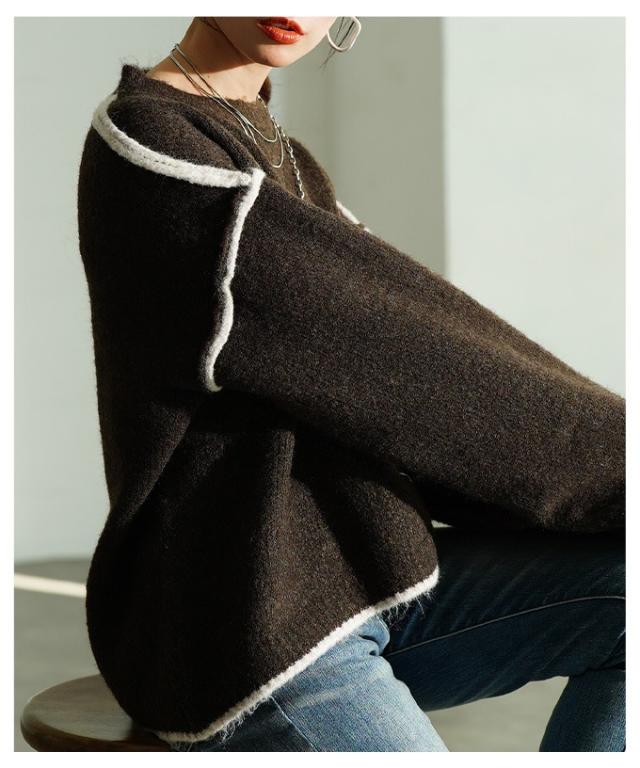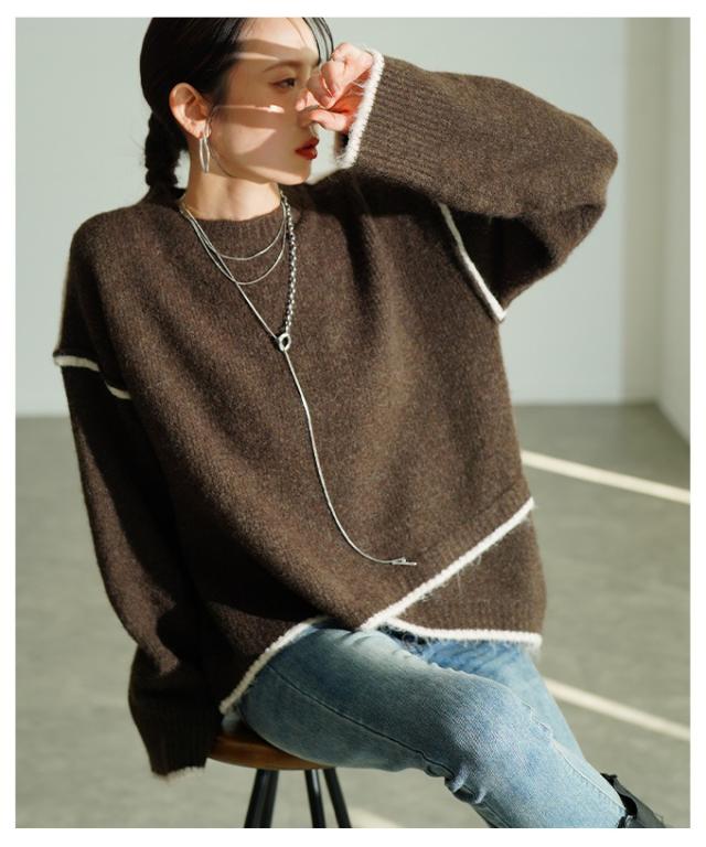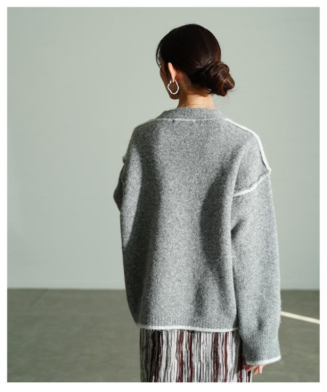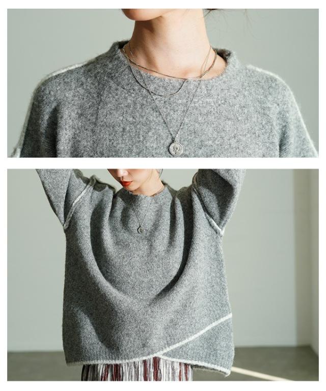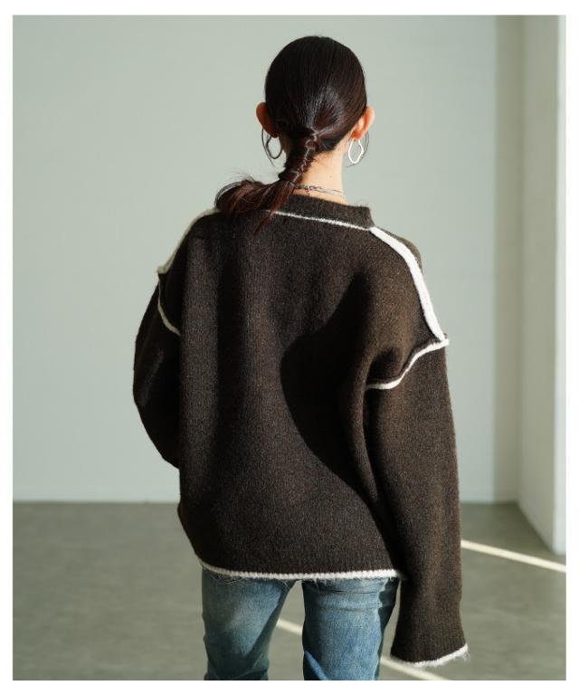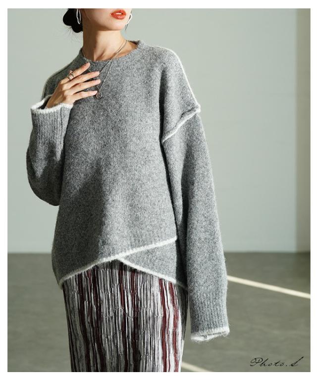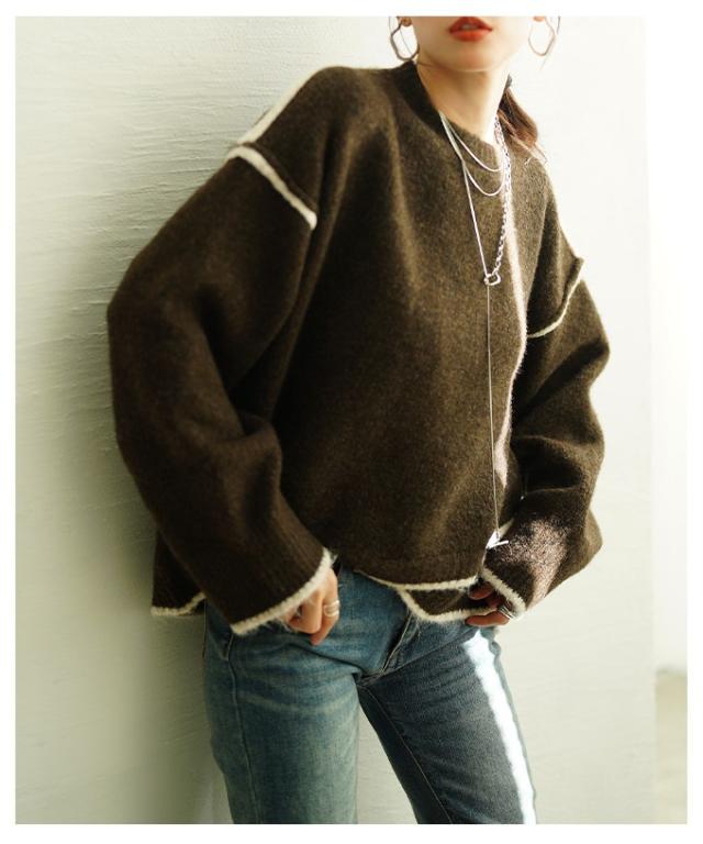 冬新作 ラフに垢抜けるパイピングイレヘムニットプルオーバー レディース ファッション トップス ニット セーター パイピング イレヘム 長袖 プルオーバー 配色 30代 40代 50代 60代 アラモード alamode otona 大人 cawaii 可愛い 洋服 かわいい服 aljun-1013s