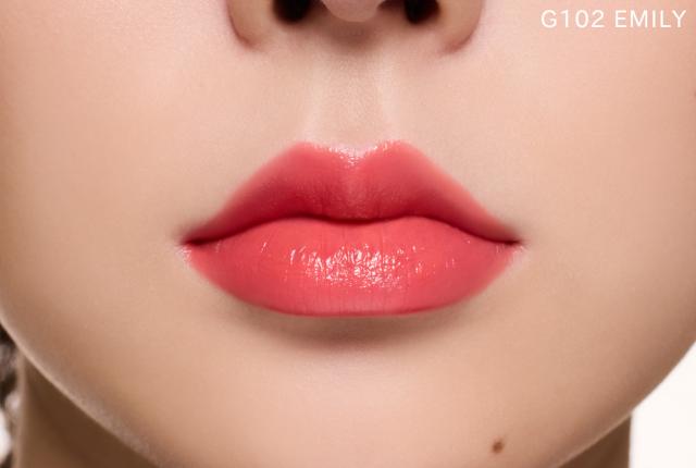 唇につけた瞬間、とろけるような光沢感と澄んだカラーのグロウリップスティック