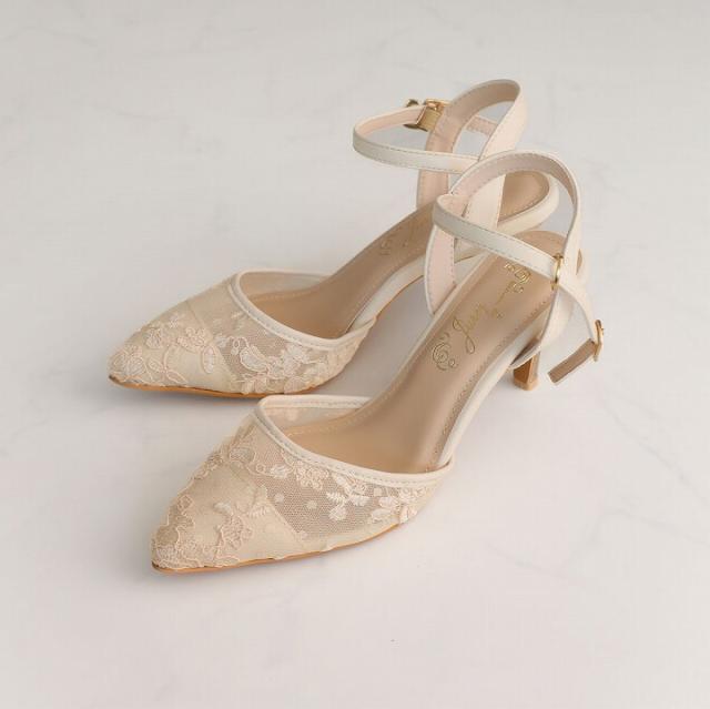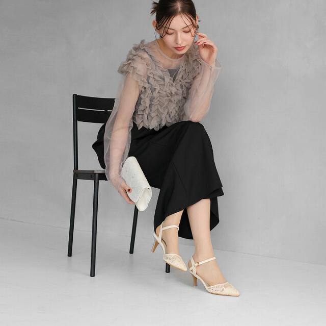 ・シアーで立体的なチュールレースとキラキラのグリッターヒールで後ろ姿まで隙のないラグジュアリーな素敵コーデに。