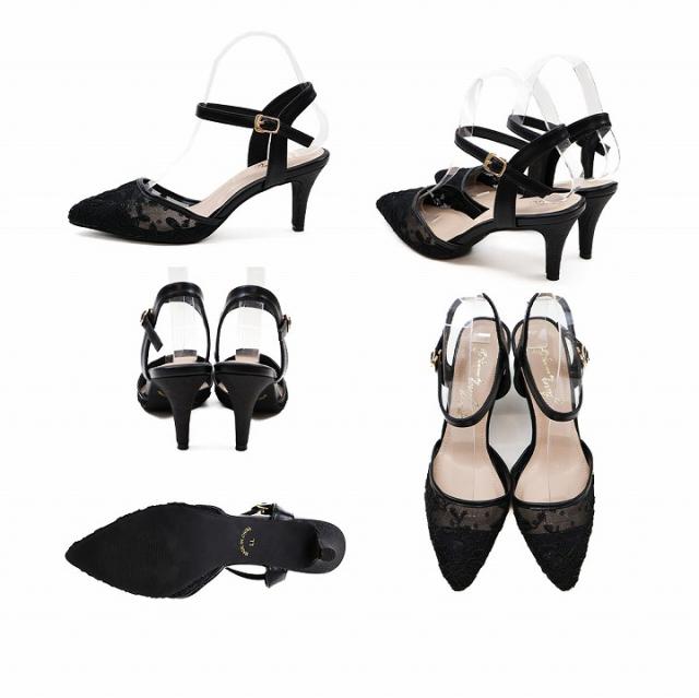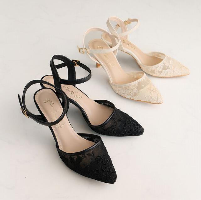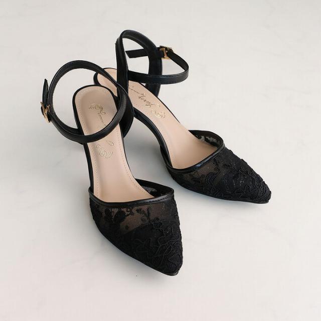 【店内全品10%OFFクーポン】【予約】26年春新作 VIVIAN ヴィヴィアン パンプス 痛くない セパレート ポインテッドトゥ アンクル ストラップ 7cm ヒール レース チュール 刺繍 シアー グリッター ラメ ブラック J3775AL