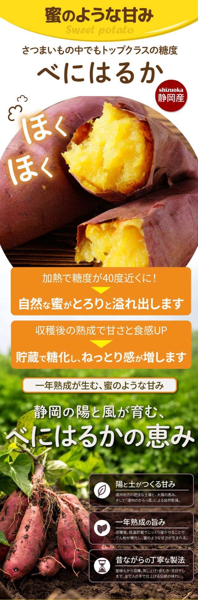 太陽と大地の恵みをいっぱいに受け、丁寧に育てた静岡県産「べにはるか」をふんだんに使用しました。