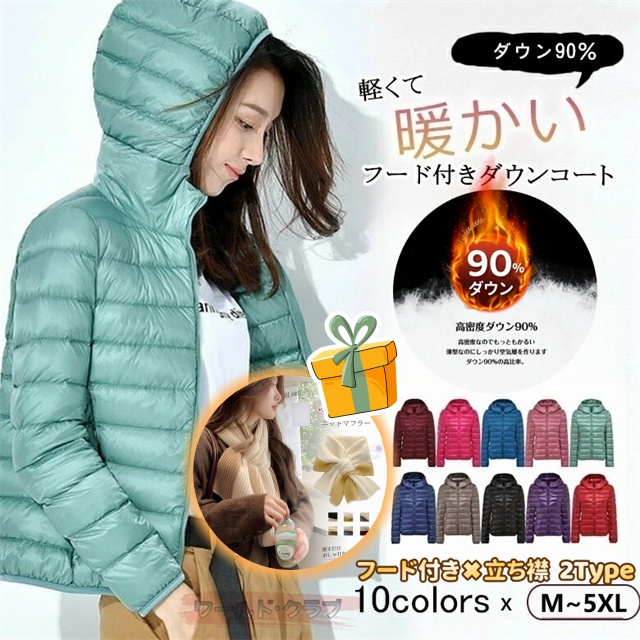 90%ダウン!超軽量 ダウンコート ダウンジャケット レディース フード付き 立ち襟 2Type レディース ダウン コート きれいめ 細見え ライトダウン ショート丈 暖かい 防寒 薄手 秋冬 羽織り コンパクト 大人 可愛い 大きいサイズ 体型カバー 通勤