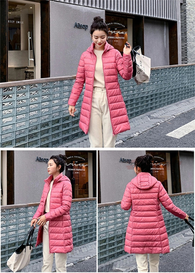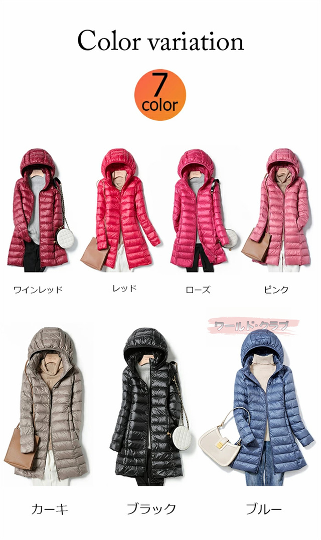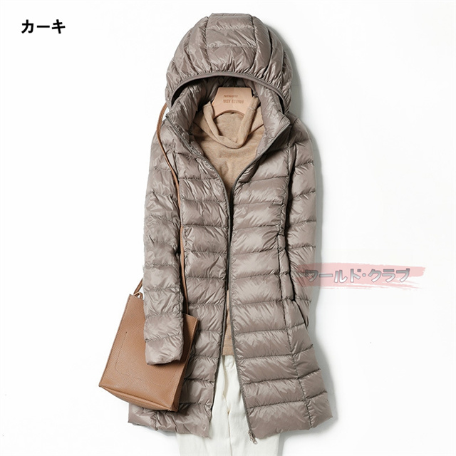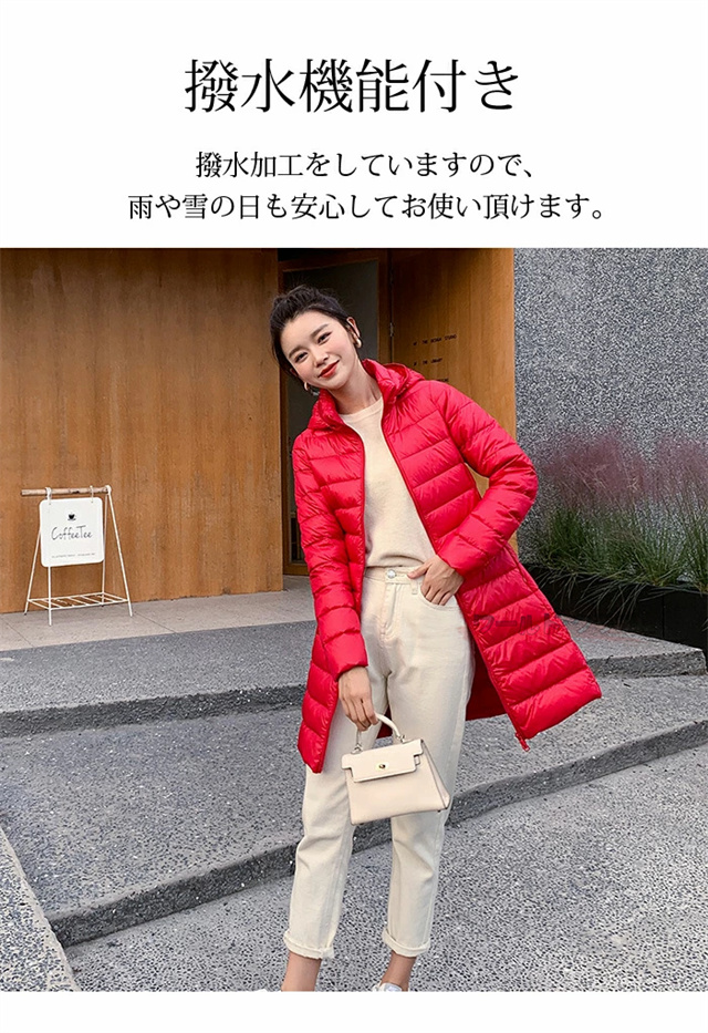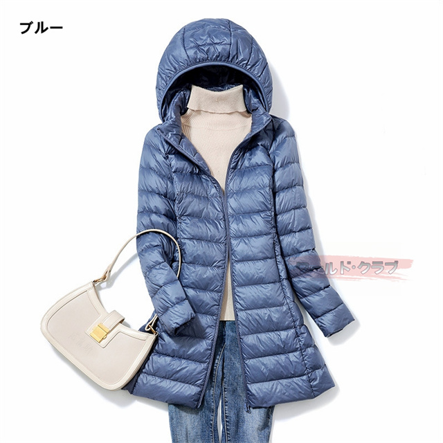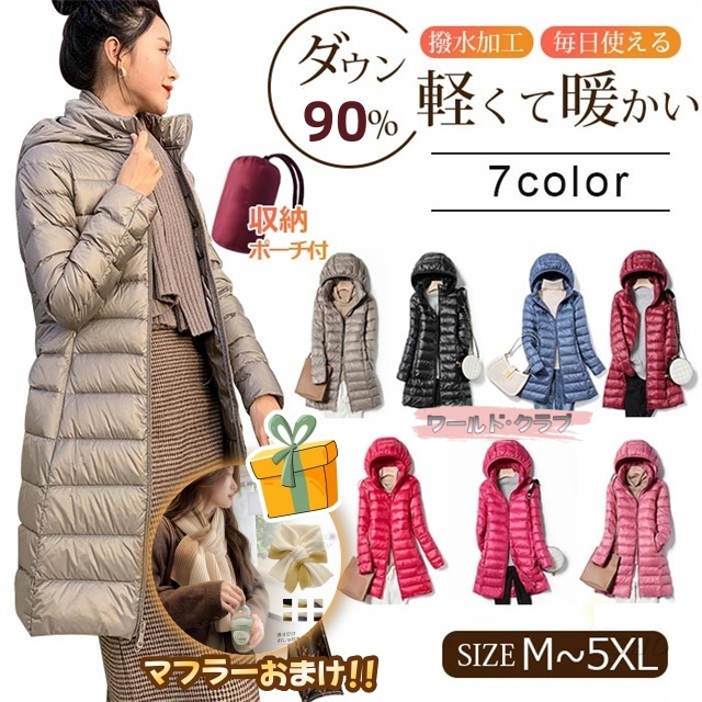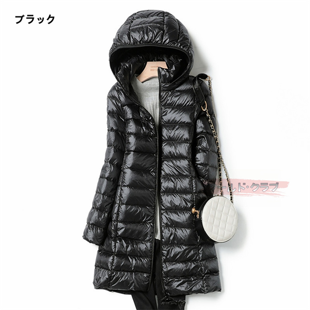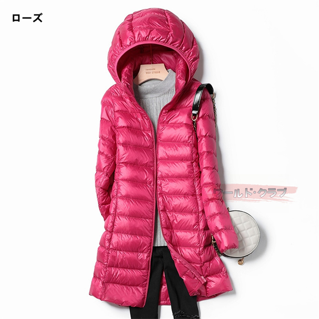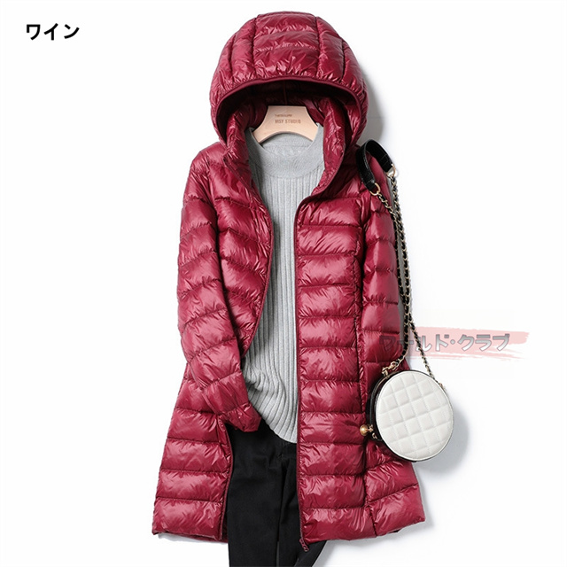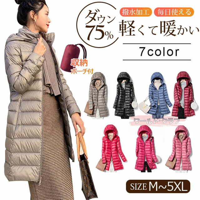 ダウンコート ダウンジャケット レディース 収納付き ロン丈 軽量 薄型 フード付き 冬物 アウター 保温 防風 防寒 撥水 ライトダウン 細身 7色 M-5XL