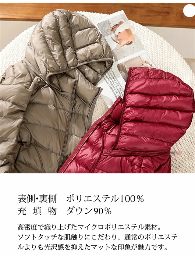 優しい肌触りのふわふわダウンジャケットぬくぬく ぽかぽか あたたかい着心地で保温性があるので、1度着たら手放せなくなりそうな着心地。動きやすい のも魅力で、身体に程良くフィットするので快適です。ノーカラーのジャケットやブルゾンのインナーとしても使えます。