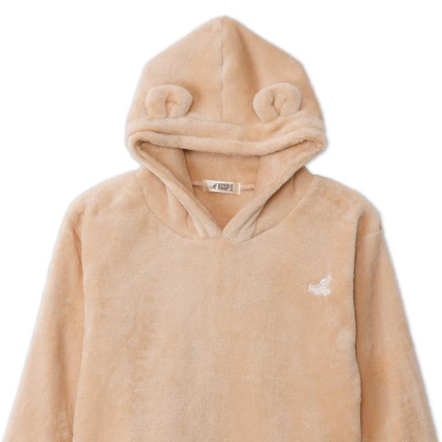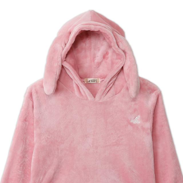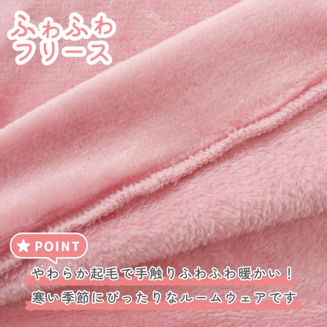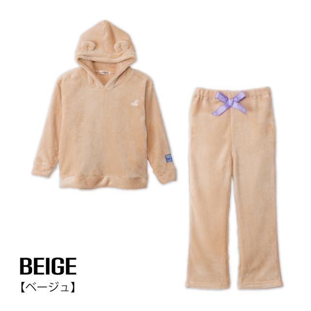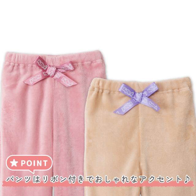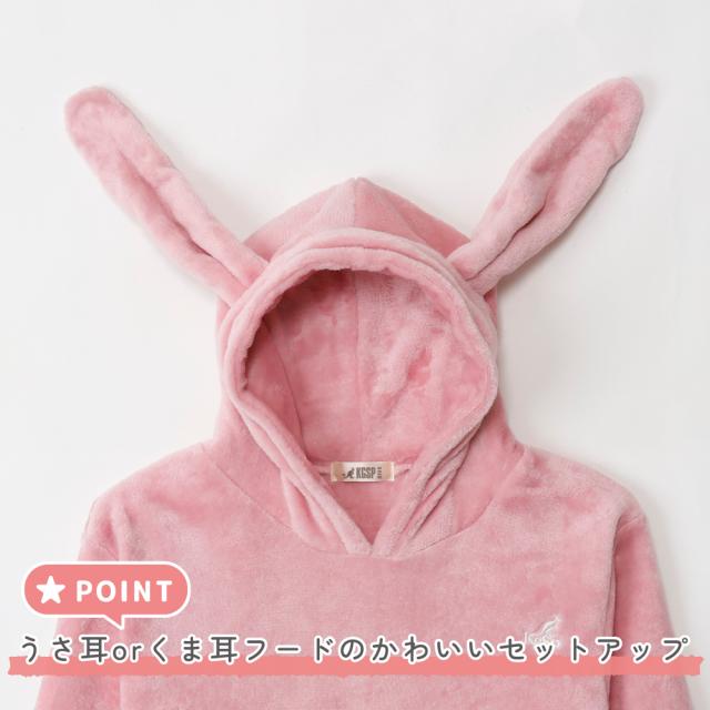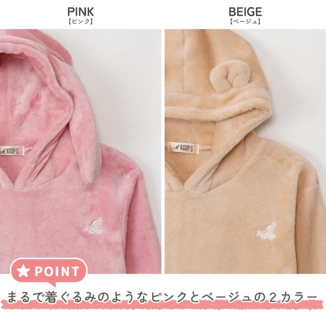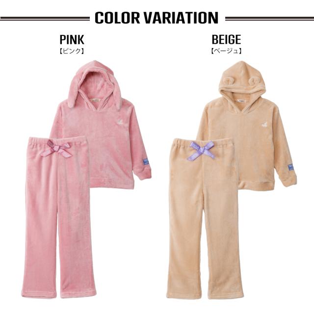 パジャマ ガールズ ふわふわフリース みみ付きフード 長袖 長パンツ 冬 ピンク ベージュ うさぎ くま 130 140 150 160 380658