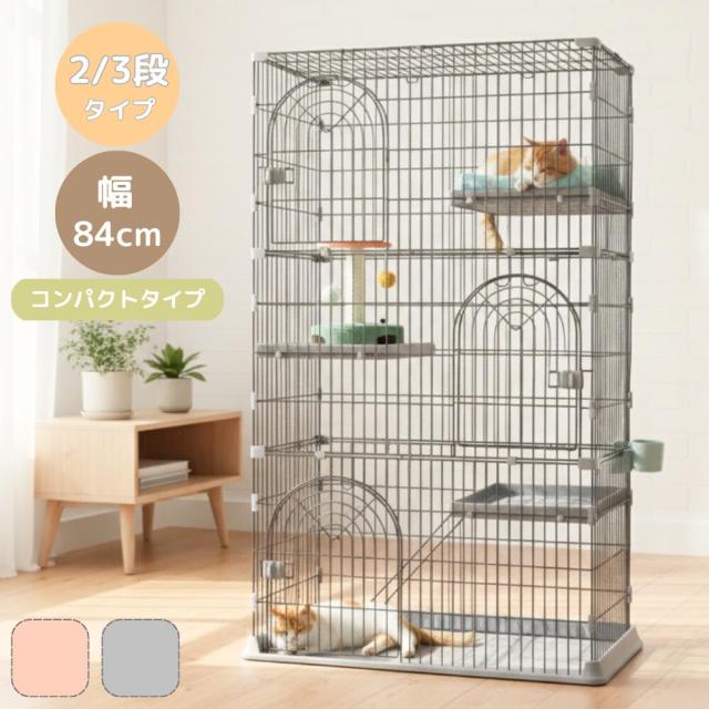 ・広々とした棚板と登りやすい梯子付きで、猫ちゃんが快適に過ごせるプライベート空間を提供。オールシーズン快適設計で、日常はもちろん来客時やお出かけ時も安心です。2段や3段タイプの猫ケージとして、多頭飼いにも最適です。