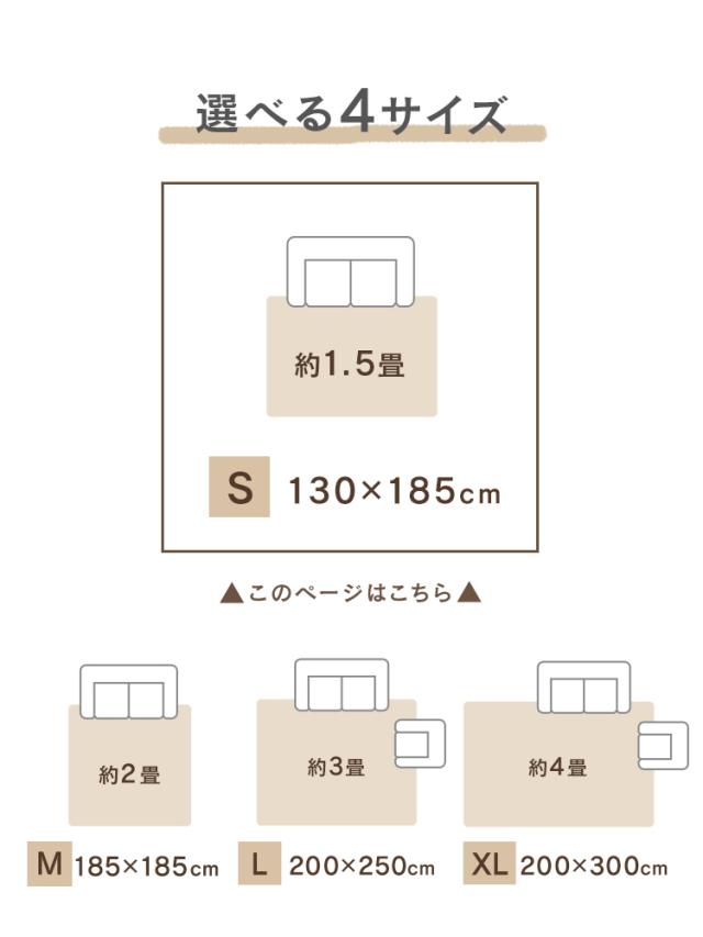 省スペースに配置しやすい、小さめ 長方形 サイズ。ベッドサイド、ローテーブルの下、小さめのソファーの足元、キッズスペースのプレイマット、一人暮らしのワンルームに。