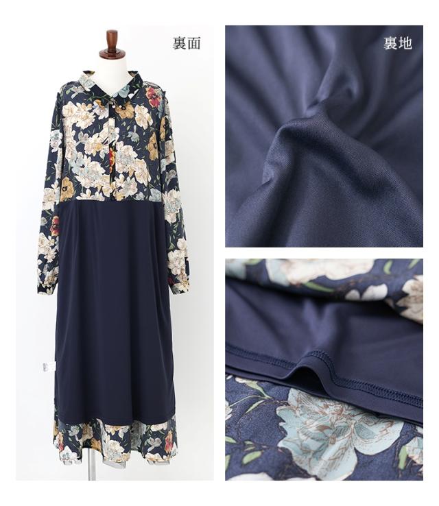 ワンピース 長袖 レディース ドレス ロング丈 花柄 チュール ドッキング シャツワンピース ベルト付き 大きいサイズ 秋 冬 【TP】 ロングワンピース マキシワンピース 花柄ワンピース パーティーワンピース パーティードレス シャツワンピ 襟付き マキシ丈 大柄 総柄 レイヤード 重ね着 おうちで洗える 裏地付き カジュアル レトロ クラシカル シンプル ナチュラル キレカジ フェミニン ガーリー ゆったり ゆる 楽ちん Sサイズ Mサイズ Lサイズ LLサイズ 3Lサイズ XLサイズ ぽっちゃり 体型カバー プラスサイズ 10代 20代 30代 40代 50代 60代 低身長 高身長 女子会 オフィス 通勤 通学 お買い物 お出掛け 旅行 リゾート レジャー 海 おしゃれ お洒落 トレンド 流行 パーティー 二次会 結婚式 somari imagination ソマリイマジネーション 可愛い系 大人女子 大人可愛い お洒落可愛い 大人カジュアル 上品 きれいめ osharewalker オシャレウォーカー おしゃれうぉーかー ネイビー 紺 マルチカラー ミックスカラー[ID]14do0nc[somari imagination花柄チュールドッキングワンピース]