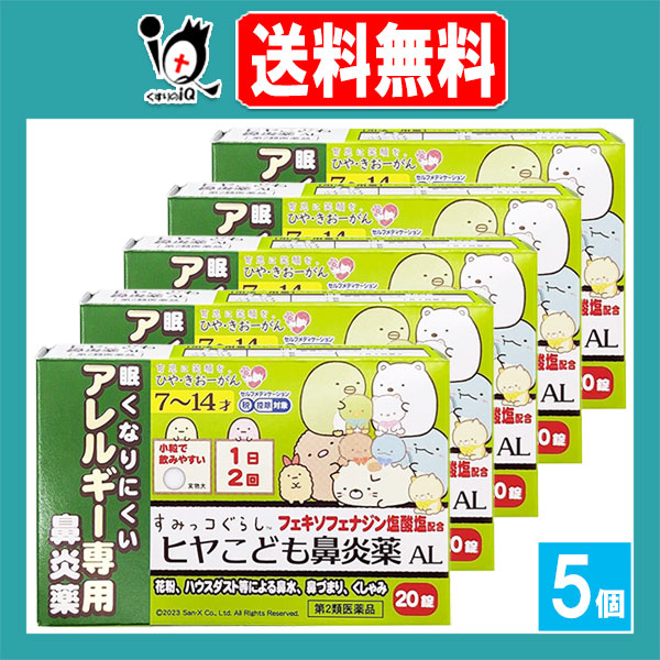 【第2類医薬品】★ヒヤこども鼻炎薬AL 20錠×5個セット【樋屋奇応丸】7-14才 眠くなりにくいアレルギー専用鼻炎薬 花粉・ハウスダスト等による鼻水・鼻づまり・くしゃみに フェキソフェナジン塩酸塩配合