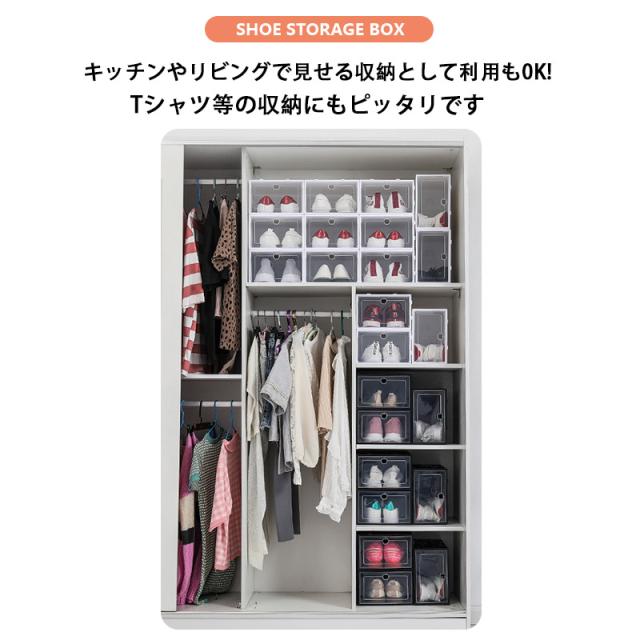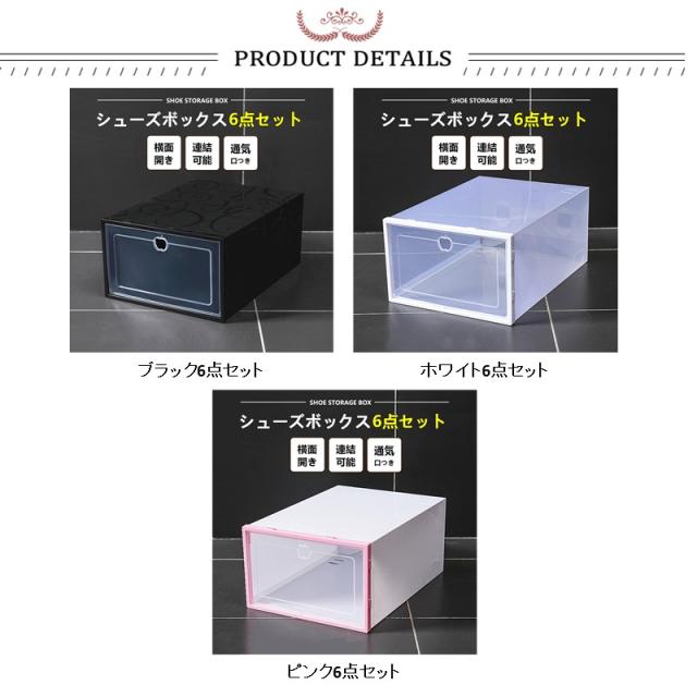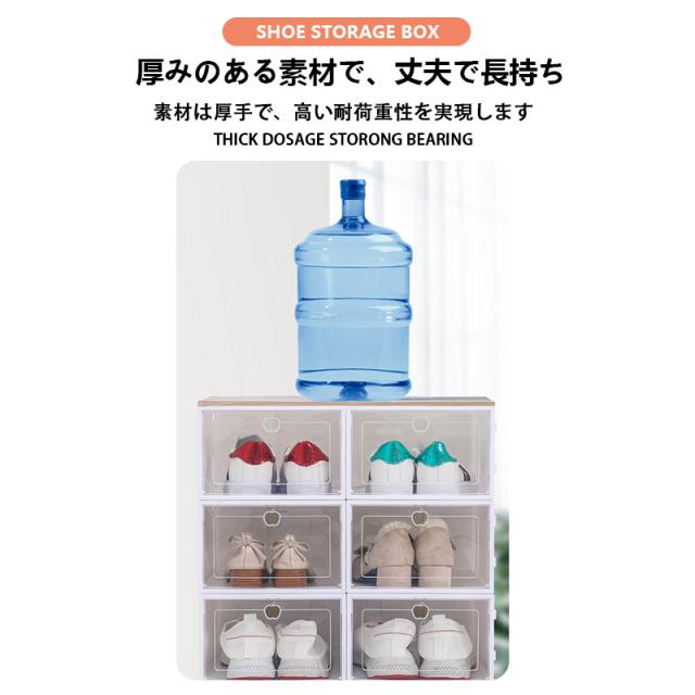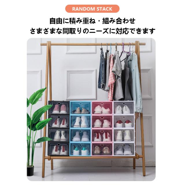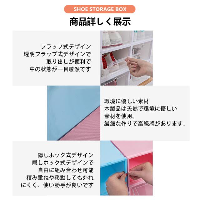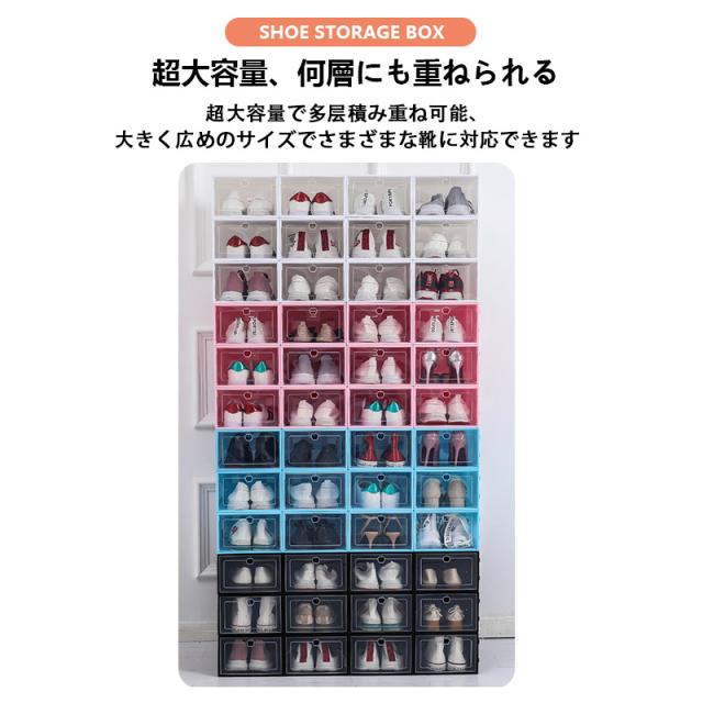 シューズボックス 6個セット シューズケース クリア シューズラック 収納BOX 靴箱 連結可能 下駄箱 横開き 積み重ね 折り畳み 扉つき 玄関収納