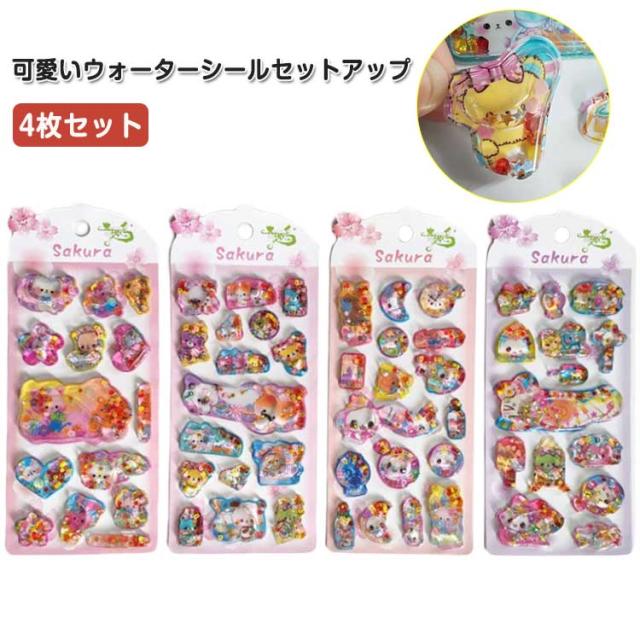 立体シール シール 装飾用 ウォーターシール ぷくぷくシール 4枚セット ぷっくりシール 手作り 立体 可愛いシール ウォーターシール DIY用 手帳 ステッカーデコ ボンドロップ 3Dステッカー シール交換 手芸用品 透明感 ツヤ かわいい クリスマス ギフト プレゼント