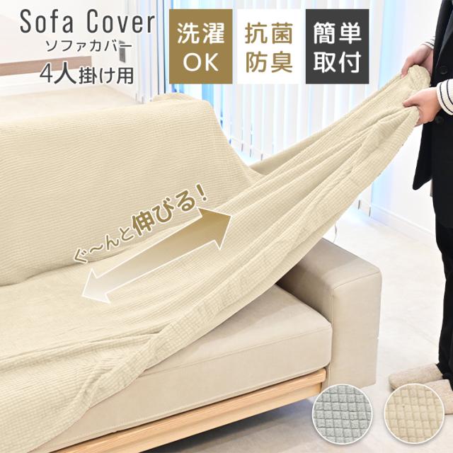 ≪新商品≫ ソファー カバー 4人掛け かけるだけ ソファ 肘付き ストレッチ ソファーカバー 抗菌 防臭 全面保護 パッド おしゃれ 北欧 ワッフル 伸びる 洗濯可 傷 汚れ 保護 リビング フィット感 伸縮 肌触り 柔らか インテリア 引っ越し 新居 模様替え 洗い替え 送料無料