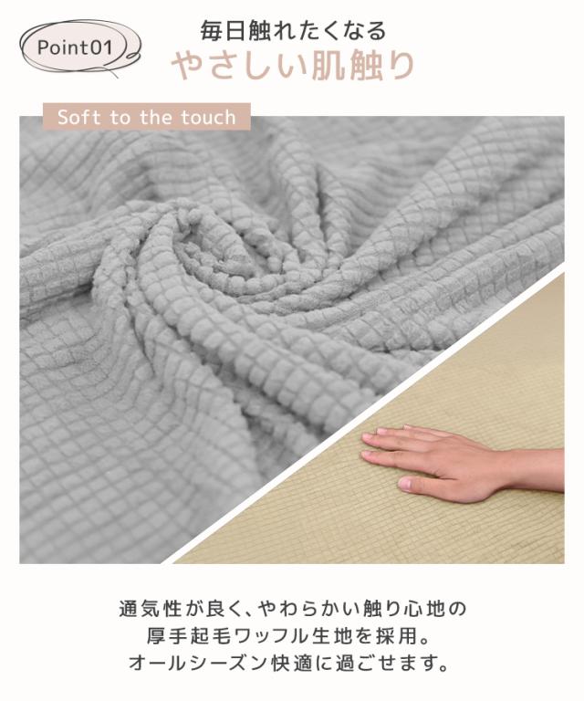 通気性が良く、やわらかい触り心地の厚手起毛ワッフル生地を採用。