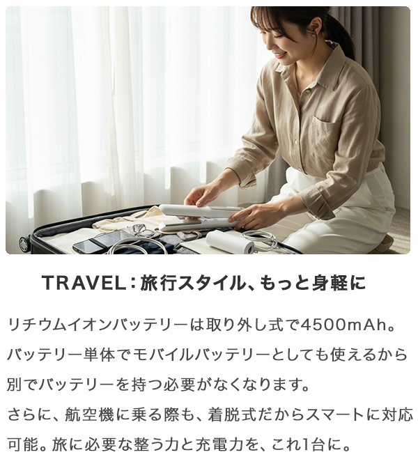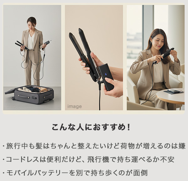 1台で「スタイリング+スマホ充電」が叶い、飛行機にも安心対応。