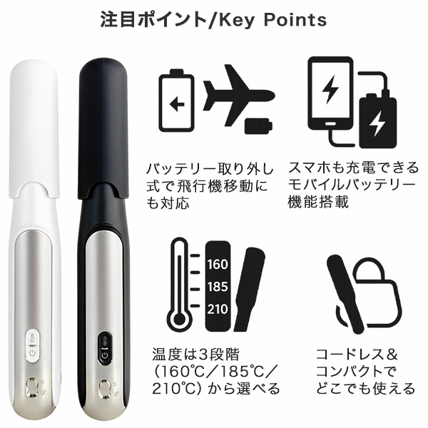 コードレス ヘアアイロン バッテリー着脱式 ストレート モバイルバッテリー機能 携帯便利 3段階温度 安全設計 旅行対応 HRS-1867