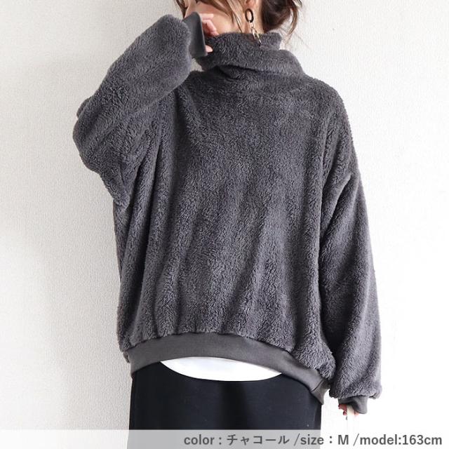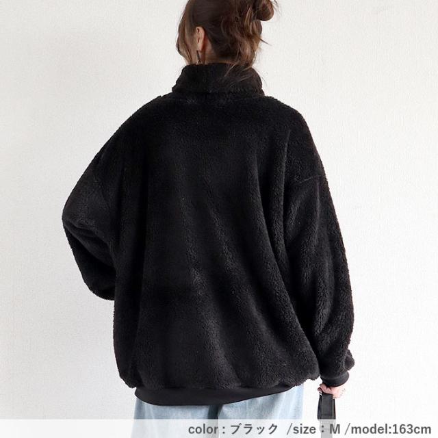 フリース トップス レディース 裏ボア 長袖 極暖 保温 黒 白 もこもこ おしゃれ ハイネック タートルネック[郵3]^t1133^★