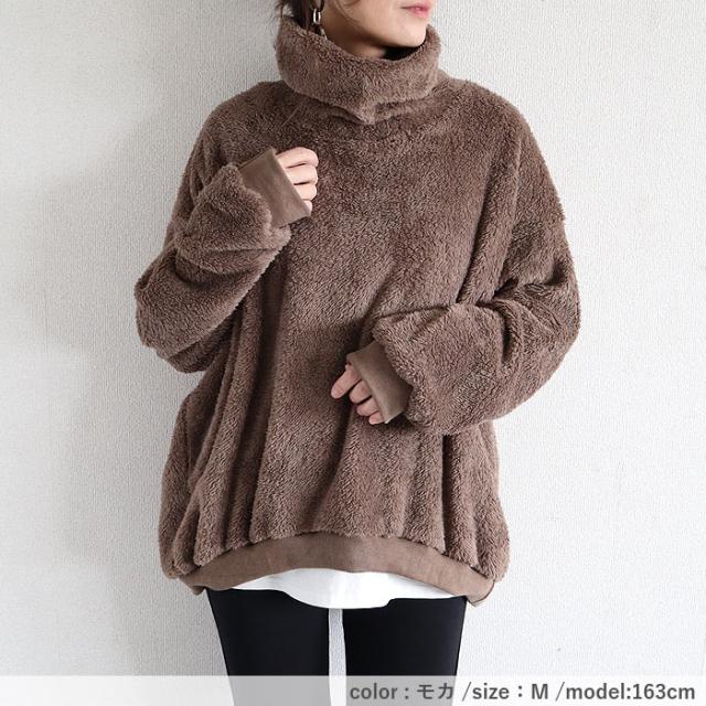 トップス レディース 裏ボア ボア フリース トレーナー スウェット ハイネック タートルネック ニット 長袖 極暖 保温 あったか 秋 冬 無地 黒 白 もこもこ 体型カバー シンプル カジュアル 40代 30代 50代 60代 大きいサイズ ゆったり おしゃれ 大人 カジュアル かわいい SALE セール uricca ウリッカ うりっか