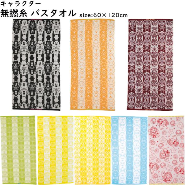 バスタオル 60×120cm キャラクター 無撚糸 両面パイル 綿100% ベビー キッズ タオル 新生活 お風呂 プール 水遊び